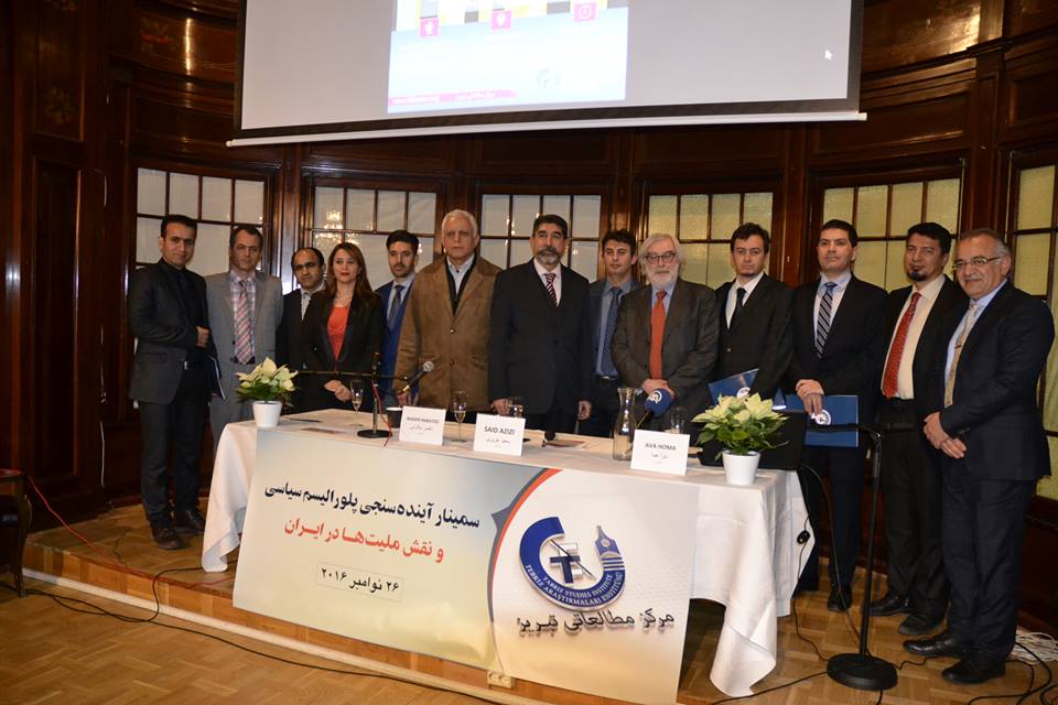 سمینار آینده سنجی پلورالیسم سیاسی و نقش ملیتها در ایران از طرف مرکز مطالعاتی تبریز در استکهلم سوئد برگزار شد. این سمینار طبق اعلام قبلی در روزهای ۲۶ و ۲۷ نوامبر 2016 به انجام رسید و سخنرانانی از ملیتها و گروههای قومی ترک، فارس، کرد، عرب، بلوچ ، ترکمن و ترکان قشقایی در این سمینار سخنرانی کردند .بخش اول سمینار در روز شنبه ۲۶ نوامبر طی چهار نشست و به مدیریت آقای سعید عزیزی به انجام رسید.